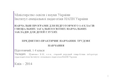 Навчальні програми для закладів для дітей зі зниженим слухом. Предметно-практичне навчання, Трудове навчання підготовчий, 1-4 класи.pdf Download (443kB) | Preview |
