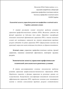 | Keywords: | management of vocational technical training, management functions, economic efficiency factors, monitoring of human resources. |