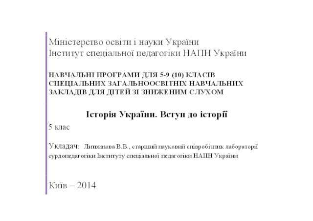 Програма ІСТОРІЯ 5 клас для дітей зі зниженим слухом.pdf Download (412kB) | Preview |