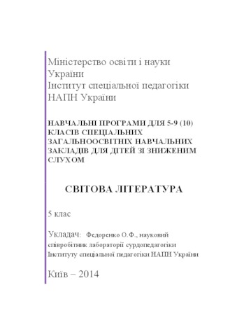Програма СВІТОВА ЛІТЕРАТУРА 5 клас для дітей зі зниженим слухом.pdf Download (541kB) | Preview |