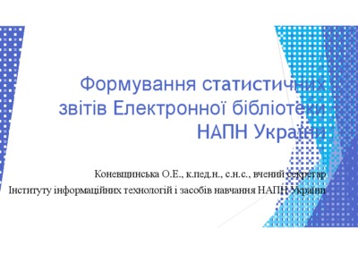 The materials of the seminar on "Maintenance of Digital Library of Academy: statistical features of processing of information resources", which took place on 09.02.2017 at the Institute of Information Technologies and learning Tools of NAPS of Ukraine. Theoretical and practical aspects of formation of statistical reports of the use of the module IRStats2 Electronic library of NAPS of Ukraine were discussed at the event. The training seminar was held for the responsible persons from the institutions of the Academy.