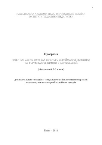 | Divisions: | Mykola Yarmachenko Institute of special education and psychology of National academy of educational sciences of Ukraine > Лабораторія сурдопедагогіки |