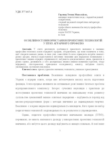 - Герлянд, Т.М. (2016) Features of the use of project technologies in vocational technical institutions of agrarian profile Теорія і методика професійної освіти, 11 (3). pp. 1-11.
