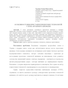 In the article the features project based learning in institutions of vocational education agrarian, reasonably, that they are made to create the right conditions for students: on their own and willing to receive the necessary knowledge from different sources; learn to use the acquired knowledge to solve practical problems and cognitive agrarian orientation; acquire communication skills by working in different groups; develop in their research skills (the abi lity to identify problems, gather information, observations, experiments, analysis, construction of hypotheses, generalizations) develops systems thinking.