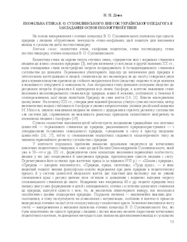 - Дічек, Наталія Петрівна (2013) Ekofilnaya ethics V.A. Sukhomlinsky: the contribution of Ukrainian teacher in laying the foundations of environmental ethics Pedagogy and psychology, 4 (81). pp. 15-23. ISSN 2304-06294