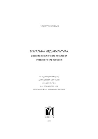 "Visual media culture: the development of critical thinking and creative perception" guidelines are the supporting materials for one of the modules of electives for 10th grade students of "Media culture" secondary schools. "Media culture" school system is created by the Laboratory of Media psychology and media education of ISPP NAES of Ukraine. Its purpose is optimizing the implementation of media education and teaching courses on media culture and media literacy for seniors. The guidelines’ aim is help for teachers of media courses in the development of visual media culture, critical thinking and creative perception for students in modern visual media reality.