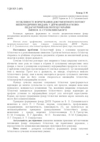| Keywords: | profiling, selectivity, ways of document supply, subject typological plan, acquisition sources, V. O. Sukhomlynskyi SSPL of Ukraine, legal deposit copy, library holdings, gifts, book exchange |