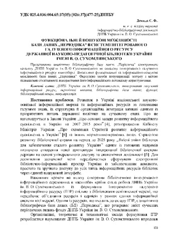 Keywords: V. Sukhomlynskyi State Scientific and Pedagogical Library of Ukraine, integrated subject information resource, periodicals, bibliographic database, functions, bibliographic retrieval, popularization