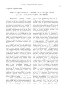 - Березівська, Лариса Дмитрівна (orcid.org/0000-0002-5068-5234) (2009) Reforming of school education in Ukraine in the twentieth century: the historiography of the issue Історико-педагогічний альманах, 1 (10). pp. 15-28.