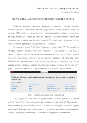 The report refers to the training of qualified IT professionals. The analysis of the demand for IT professionals Cherkasy region. The analysis suggested the use of a dual education system for training computer spetsianostey.