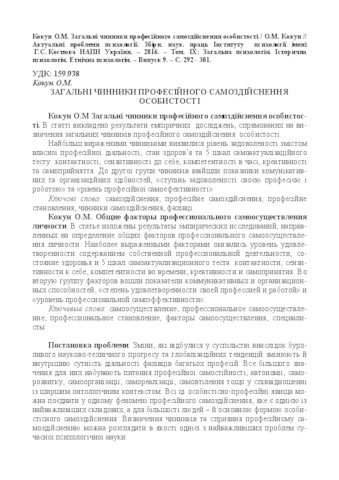- Кокун, Олег Матвійович (2016) General factors of personal professional self-fulfilment Актуальні проблеми психології, 1 (9). pp. 292-301. ISSN 2072-4772