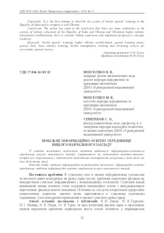 - Моісеєнко, Н.В., Моісеєнко, М.В and Семеріков, С.О. (2016) The mobile information and educational environment of higher educational institution Вісник Черкаського університету. Серія «Педагогічні науки», 11. pp. 20-27. ISSN 2076-586X