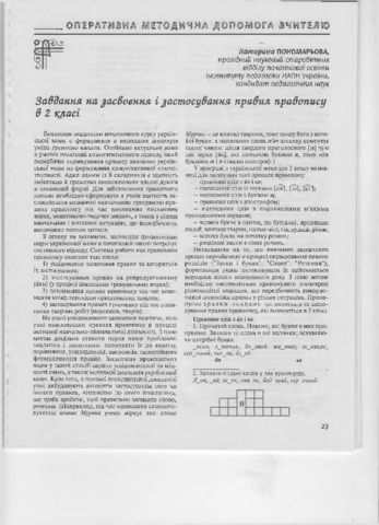- Пономарьова, К. І. (2017) Task on mastering and application of rules of spelling in 2 classes Початкова школа, 3 (573). pp. 23-26. ISSN 0131-5358