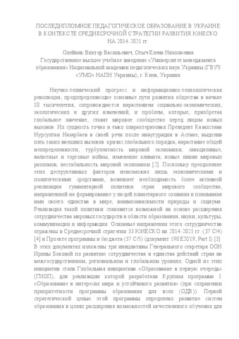 - Олійник, В.В. and Отич, О.М. (2015) Postgraduate pedagogical education in Ukraine in the context of the medium-term development strategy of UNESCO for 2014-2021. «Реализация стратегии ЮНЕСКО по подготовке педагогических кадров: Проблемы и пути внедрения инновационных технологий в образовательное пространство», 1. pp. 32-37.
