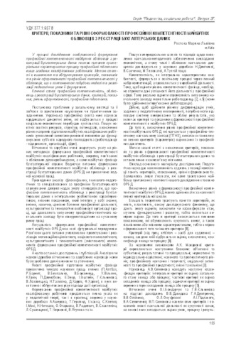 - Ростока, Марина Львівна (2015) Criteria, Indicators and Levels of the Formation of Professional Competence of Future Accountants Сlercs with Registration of Accounting Data Науковий вісник Ужгородського університету. Серія Педагогіка. Соціальна робота (37). pp. 155-158.