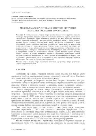- Вакалюк, Тетяна Анатоліївна (2016) Clouds oriented model of support training bachelor of informatics Інформаційні технології і засоби навчання, 6 (56). pp. 64-76. ISSN 2076-8184