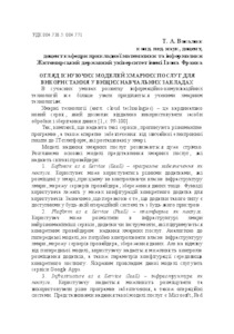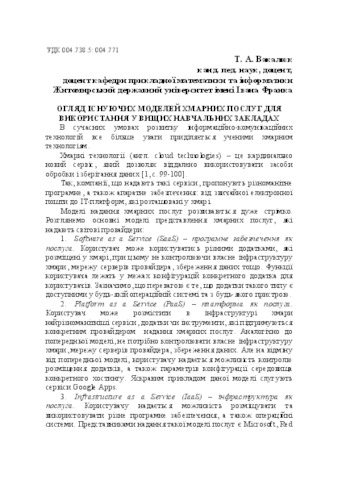 - Вакалюк, Тетяна Анатоліївна (2016) Review of existing models of cloud services for use in higher education In: Тези доповідей VIII Міжнародної науково-технічної конференції «Інформаційно-комп’ютерні технології – 2016» (22–23 квітня 2016 р.) . ЖДТУ, м. Житомир, Україна, pp. 215-217.