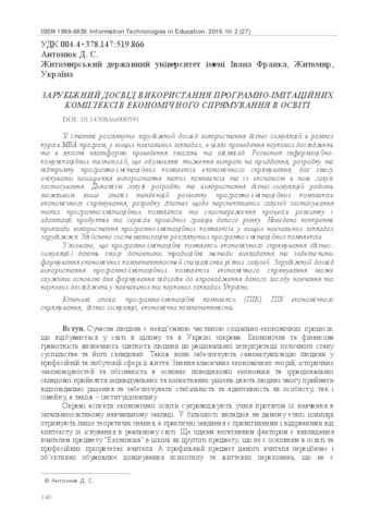 - Антонюк, Д.С. (orcid.org/0000-0001-7496-3553) (2016) International experience of the economic simulation software usage in education Інформаційні технології в освіті, 27. pp. 140-153. ISSN 2306-1707