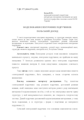 - Белан, Владислав Юрійович (2016) Modeling of electronic textbooks: the polish experience Теорія і методика професійної освіти, 3 (11). pp. 1-11.