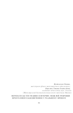 - Вакалюк, Тетяна Анатоліївна and Куліковська, О.В. (2016) Benefits of the existing models of software development in a real project In: Теорія і практика професійної підготовки фахівців у контексті загальноєвропейських інтеграційних процесів . Вид-во ЖДУ, м. Житомир, Україна, pp. 56-59.