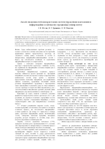 - Гриценко, Валерій Григорович, Подолян, Оксана Миколаївна and Юстик, Ірина Вадимівна (2016) Analysis of the possibilities of using learning management systems in the information-educational environment of the university Science and Education a New Dimension. Pedagogy and Psychology, 4 (41) (86). pp. 1-80. ISSN 2308-5258