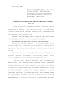 The article reveals the importance of self education teacher lifelong examined the structure of adult education in modern Ukraine. The main forms of organization of adult education, formal education, informal education, informalna education.