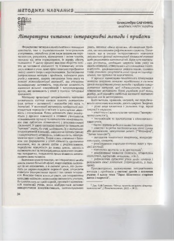 - Савченко, Олександра Яківна (orcid.org/0000-0001-5040-0860) (2017) Literary reading: interactive methods and techniques Початкова школа, 4 (574). pp. 34-39. ISSN 0131-5358