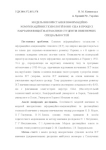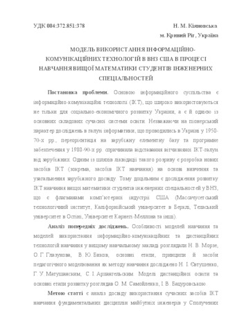- Кіяновська, Н.М. (2013) Model of use information and communication technologies in US universities in learning higher mathematics engineering students Сучасні інформаційні технології та інноваційні методики навчання у підготовці фахівців: методологія, теорія, досвід, проблеми, 34. pp. 321-326. ISSN 2412-1142
