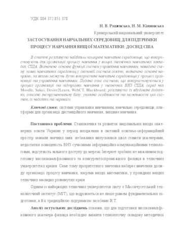 - Рашевська, Н. В. and Кіяновська, Н.М. (2013) The U.S. experience in using LMS for supporting the learning in higher mathematics education Педагогічні науки: теорія, історія, інноваційні технології, 2 (28). pp. 295-304. ISSN 2312-5993