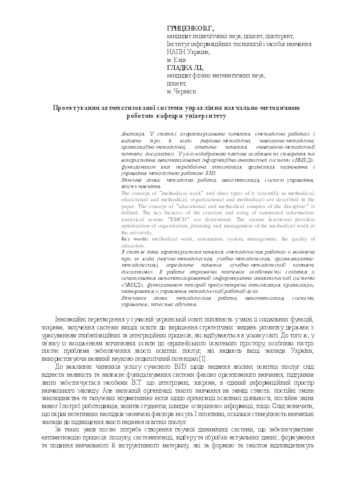 - Гриценко, Валерій Григорович and Гладка, Людмила Іванівна (2013) Design of automated control system educational and methodical work of the university Department Вища освіта України у контексті інтеграції до європейського освітнього простору, 31 (7-49). pp. 472-482. ISSN 978-966-8840-94-4(7)