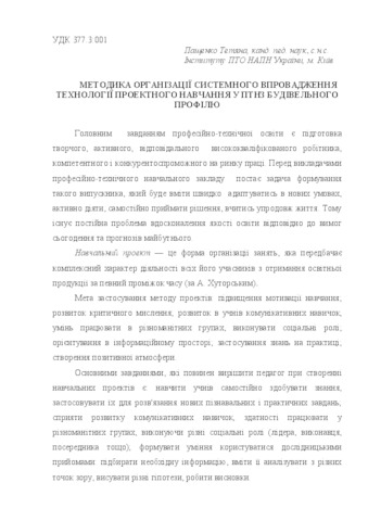 The theses reveal the main ways of systemic imitation of the technology of project training in vocational and technical educational institutions of the building profile.