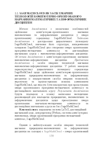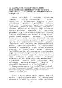 - Шокалюк, С.В., Маркова, О. М. and Семеріков, С.О. (2017) SageMathCloud as the Learning Tool Cloud Technologies of the Computer-Based Studying Mathematics and Informatics Disciplines Моделювання в освіті: Стан. Проблеми. Перспективи. pp. 130-142.