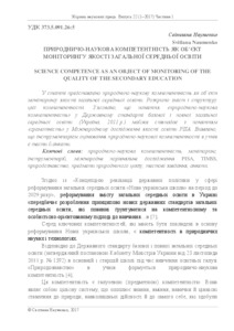 - Науменко, С.О. (2017) Science competence as an object of monitoring of the quality of the secondary education Педагогічна освіта: теорія і практика, 1 (22). pp. 310-319. ISSN 2309-9763