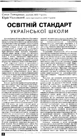 - Гончаренко, Семен Устимович and Мальований, Юрій Іванович (1996) Ukrainian school educational standards Світло, 2. pp. 2-6.