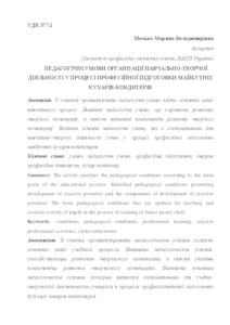 | Keywords: | conditions, pedagogical conditions, professional training, creative professional activities, cook-confectioner. |