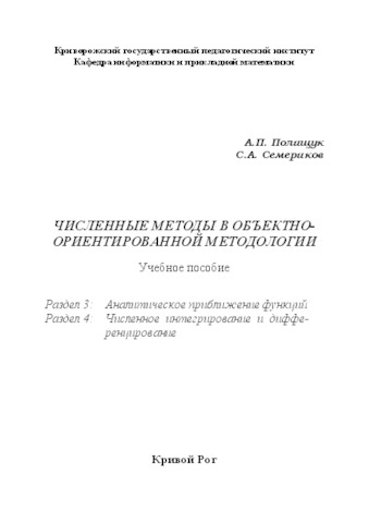 Поліщук, О.П. and Семеріков, С.О. (orcid.org/0000-0003-0789-0272) (1998) Numerical methods in object-oriented methodology. Sections "Analytic approximation of functions", "Numerical integration and differentiation" . КГПИ, м. Кривий Ріг, Україна.