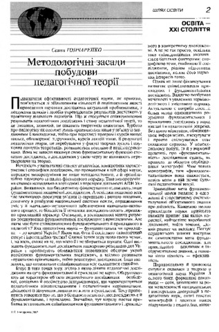 - Гончаренко, Семен Устимович (2007) The methodological framework for designing educational theory Шлях освіти, 2. pp. 2-10.