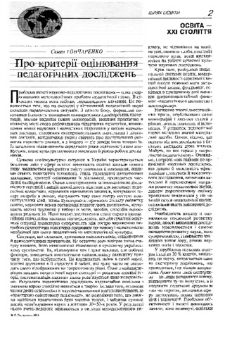 - Гончаренко, Семен Устимович (2004) Criteria for evaluation of educational research Шлях освіти, 1. pp. 2-6.