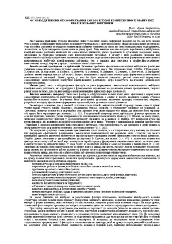 - Мося, І.А. (2013) The main determinants of the formation of the self-educational competence of future skilled workers Проблеми сучасної педагогічної освіти. Серія "Педагогіка і психологія" (39). pp. 180-187.