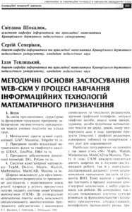 - Шокалюк, С.В., Семеріков, С.О. (orcid.org/0000-0003-0789-0272) and Теплицький, І.О. (2009) Methodological basis of a WEB-SCM using in learning information technology of mathematical destination Інформатика та інформаційні технології в навчальних закладах, 2. pp. 101-109.