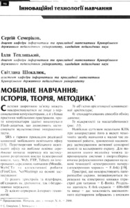 - Семеріков, С.О. (orcid.org/0000-0003-0789-0272), Теплицький, І.О. and Шокалюк, С.В. (2009) Mobile learning: history, theory, methods Інформатика та інформаційні технології в навчальних закладах, 1. pp. 96-104.