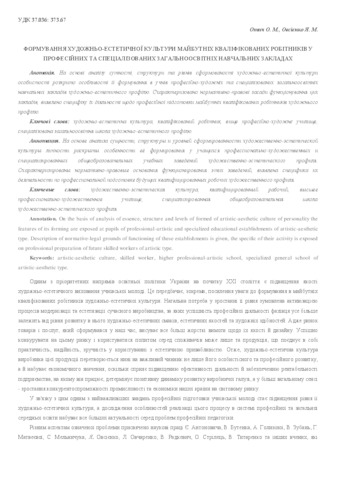 - Отич, О.М. and Овсієнко, Я.М. (2014) formation of artistic and aesthetic culture of the future skilled workers in professional and Specialized training institutions Етнодизайн:європейський вектор розвитку і національний контекст, 1. pp. 117-129.