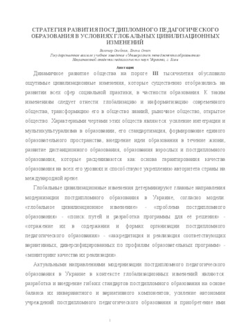 | Keywords: | civilizational change, globalization, post-graduate teacher education |