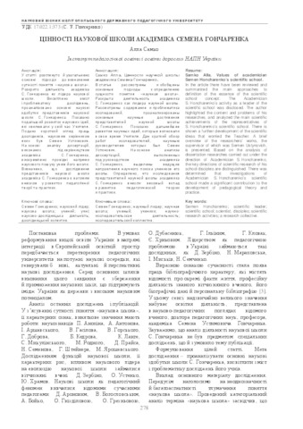 - Самко, Алла Миколаївна (orcid.org/0000-0003-0785-0510) (2016) Values of academician Semen Honcharenko’s scientific school Науковий вісник Мелітопольського державного педагогічного університету. Серія: Педагогіка (17). pp. 278-284. ISSN 2219-5203