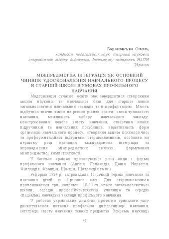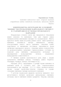 - Барановська, Олена Володимирівна (2017) Intersubject integration as a major factor in improving the educational process in high school in terms of professionally oriented training Folia Comeniana: Вісник Польсько-української науково-дослідницької лабораторії психодидактики імені Я. А. Коменського, 1. pp. 46-49.
