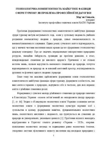 The proposed theses reveal the essence of geoecological competence of future specialists in the field of tourism.
