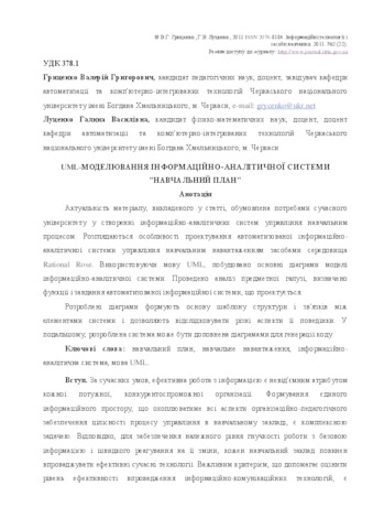 - Гриценко, Валерій Григорович and Луценко, Галина Василівна (2011) UML-design of the information analysis system "Curriculum" Інформаційні технології і засоби навчання, 2 (22). ISSN 2076-8184