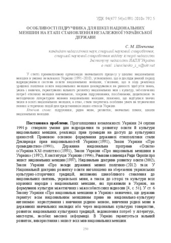 - Шевченко, Світлана Миколаївна (2017) Features of the textbook for schools of national minorities at the stage of formation of an independent Ukrainian state Problems of the modern textbook (18). pp. 250-259. ISSN 2411-1309