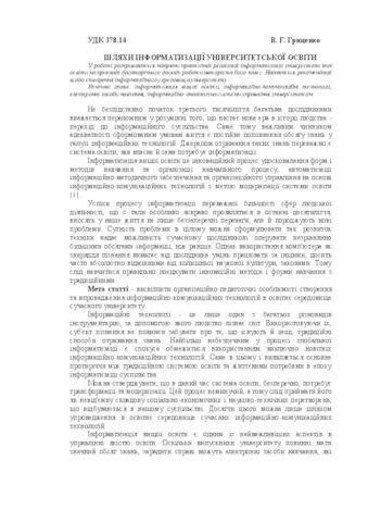 - Гриценко, Валерій Григорович (2011) Ways of the university education computerization Вісник Черкаського університету, 2 (211). pp. 35-39. ISSN 2076-586Х