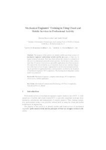 The purpose of this article is to identify mobile and cloud services of mechanical engineers’ professional activity and the principles of their use in higher technical education. There have been defined the criteria for evaluation of the tools for educational and professional activities. On the basis of this criteria, more than 30 various cloud services and mobile applications have been analyzed. The analysis has shown that the use of Autodesk cloud services and their integration with cloud services Google is appropriate for professional and practical training of specialists in applied mechanics, and it promotes an effective development of mechanical engineers’ ICT competence. The learning tools integrated system model was proposed.